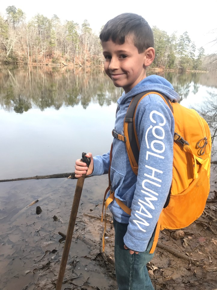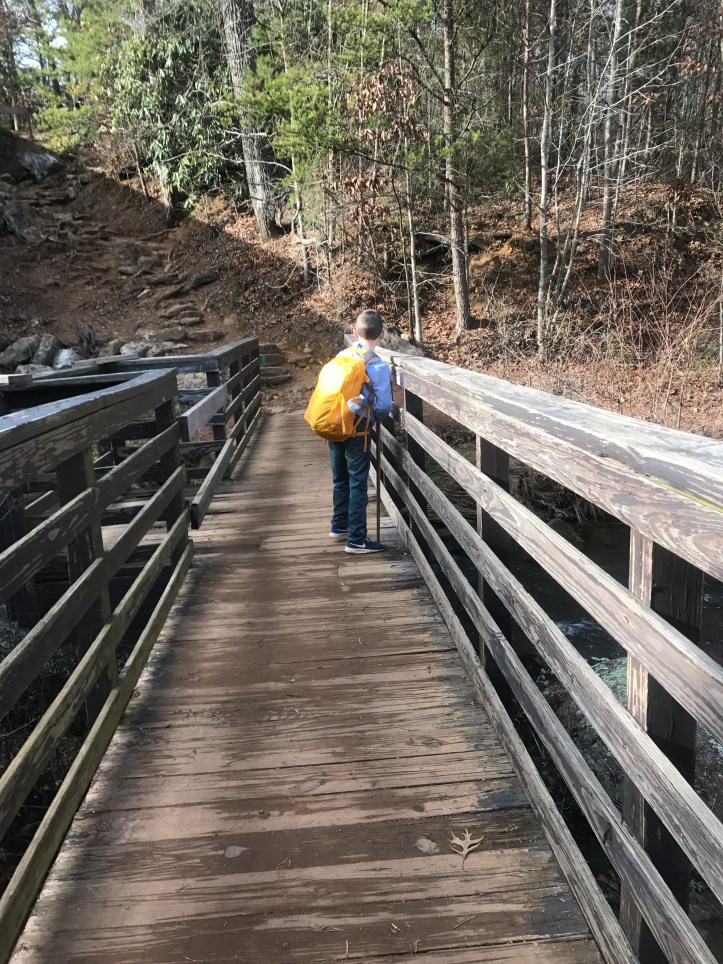 We started out simple. The Lake Placid Loop at Paris Mountain State Park is perfect for any age or fitness level. Especially kiddos! Preston loves packing his Osprey pack before we head out. (Thanks, Mast General Store!)