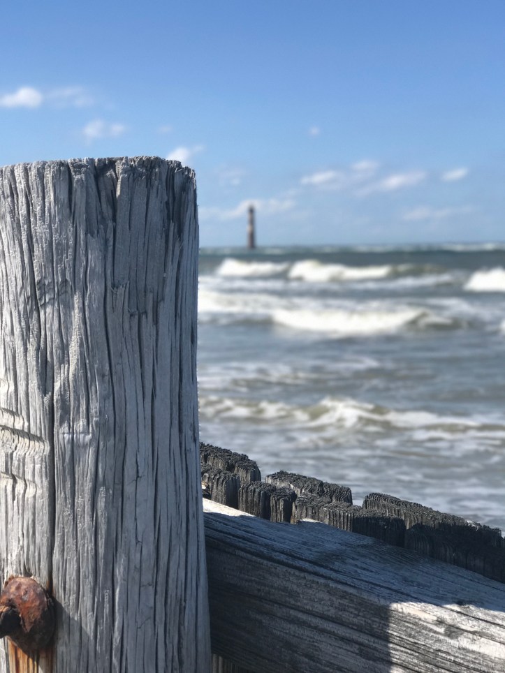 This was my first trip to the Morris Island Lighthouse. Rather than walk the path down the gravel road, we chose to hike down the beach. And by we, I mean me. Faye planted her beach bum in the sand to people watch while I sweated my way to the end of the proverbial rainbow.