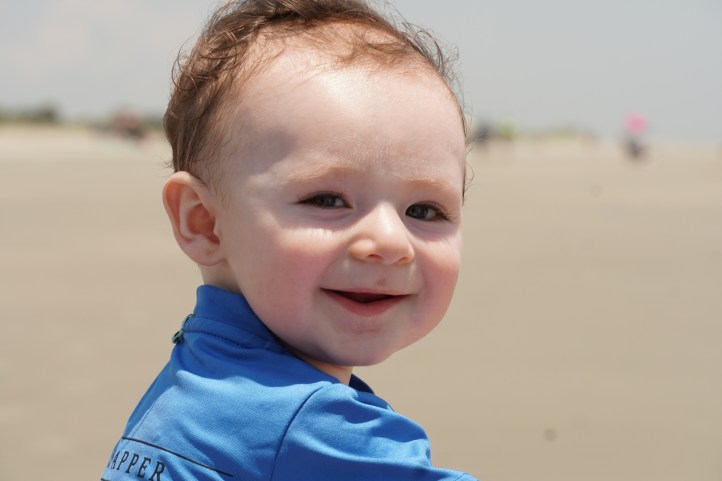 Contrary to the look on his face, he did not hate the water. He did hate the way the sand disappears from under your feet with the tide. I don’t blame him.