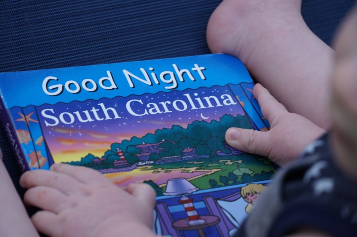 If you’re a parent (or grandparent) and haven’t purchased this book for your kiddo, it’s a MUST! The story is a “spin off” of Goodnight Moon and the perfect book for South Carolina lovers! Jackson loved the colorful pictures.