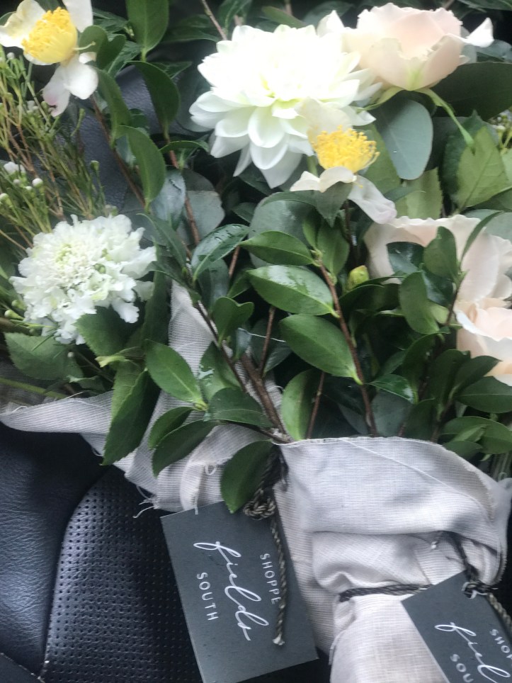 But friendship + family. Those are most definitely my thing. I love supporting the people I love as they pursue the things that they love. Unfortunately, it rained on their parade (altho they sold out). In the future, you’ll be able to watch their cute little flower car pop up all over Greenville! The flowers are stunning and you can create your bouquet stem by stem. Or, if you’re like me and have no idea how to make a bouquet, they’ll do it for you. Be sure to follow them on social media (@shoppefieldssouth) to keep up with their itinerary! (You can also follow Megan here).
