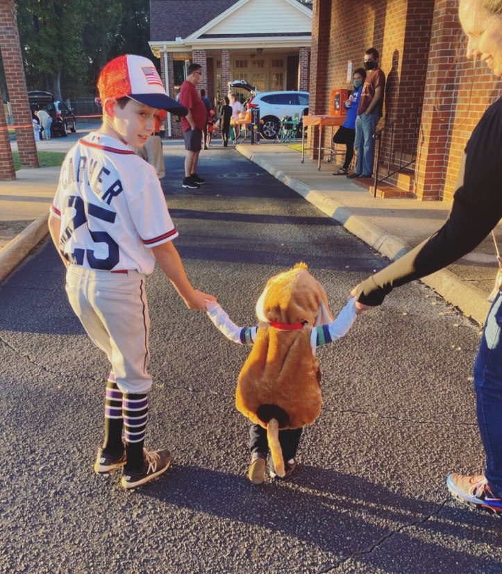 Friday night we went to a Trunk or Treat at our church (Preston was with us for that). Due to COVID, it was very small and socially distanced. For Jackson, it was perfect. I mean, let’s be real… all any of us wanted was to parade him around so people could oooh and ahhh over how cute he was in his puppy costume! Mission accomplished.