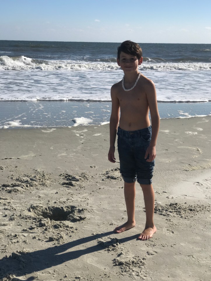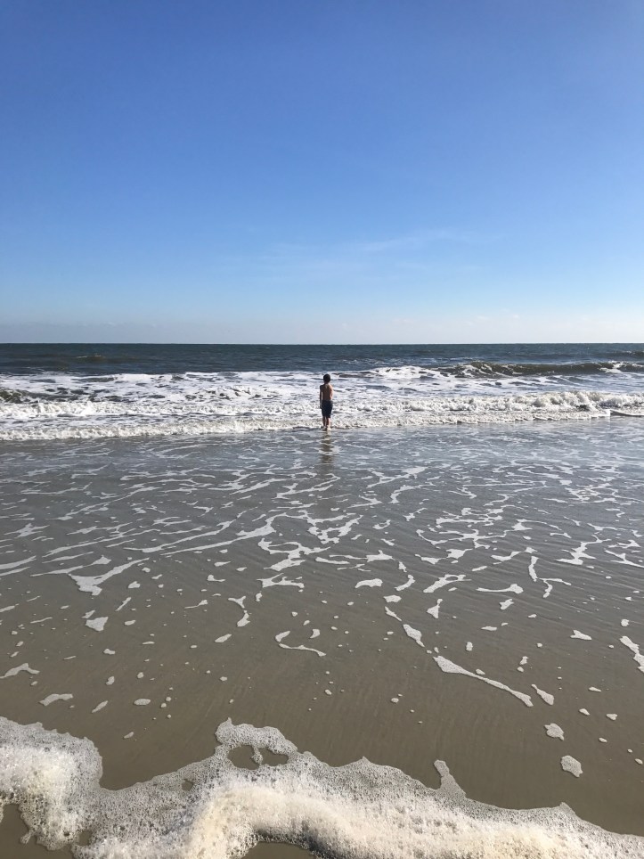 However, on this day, we had tons of company. One minute Preston was running solo through the surf and the next he had a pod of dolphins following him!