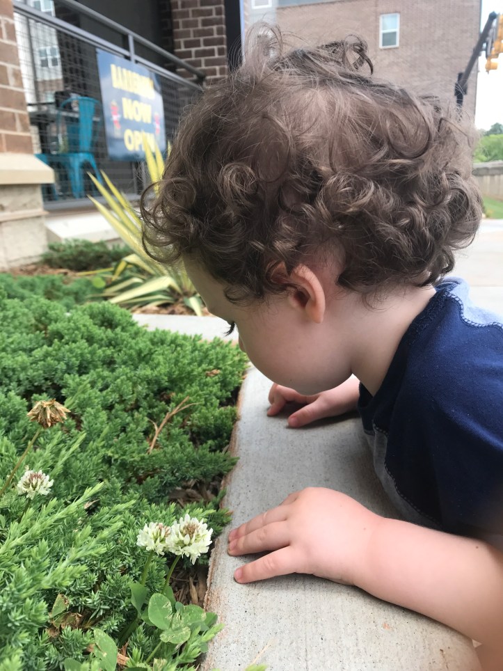 Jackson loves to sit on the sidewalk and watch the ants as they go marching by.