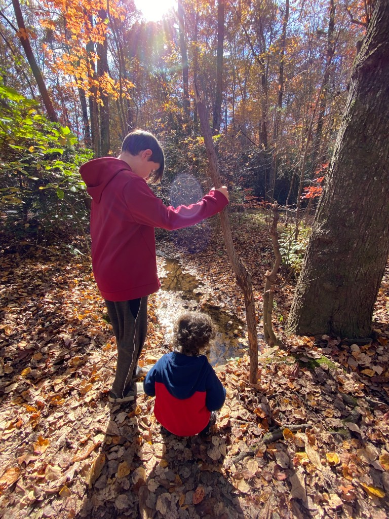 Jackson: Obviously we do not “do work” with him. Everything he learns is thru play and exploration (the big kids learn a lot that way too). On this particular hike, he practiced climbing and balancing on the rocks. He’s getting so much more confident. I’m constantly amazed at everything he retains just by listening to JP and Preston. He ended up carrying his own piece of moss home in a ziplock. He knows what it looks like, the color, and where it grows.