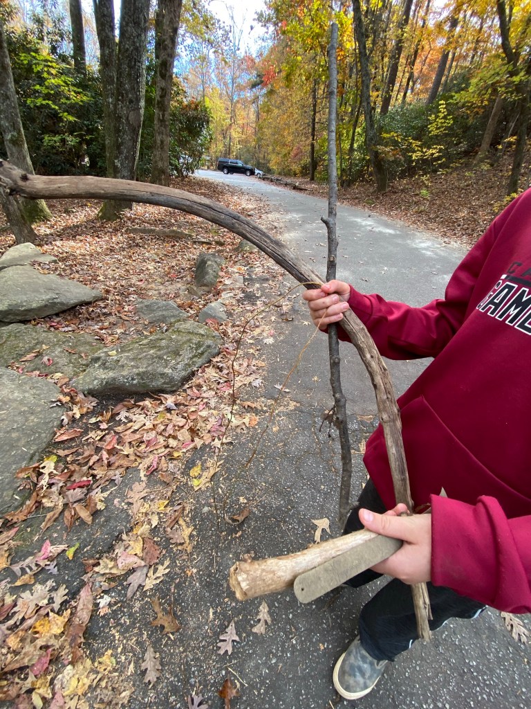 Preston: History – we’ve been reading about early Americans/Hunter & Gatherers. His project for the day was to build a bow and arrow out of natural resources. Science – he collected leaves of every color + we talked about why/how they change color + photosynthesis.