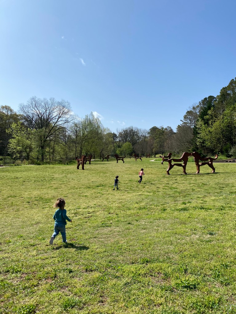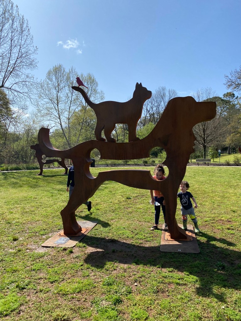 We ended the morning on the playground. The trail & playground are right beside The Big Dog Show exhibit – we parked there. When you go, be sure to check out the k9 sculptures.