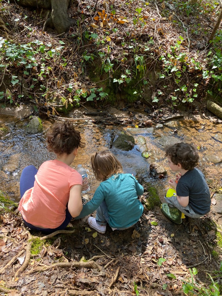 Unfortunately, we didn’t find mushrooms. We did find a little creek and, well, you know how much our kids love a creek.