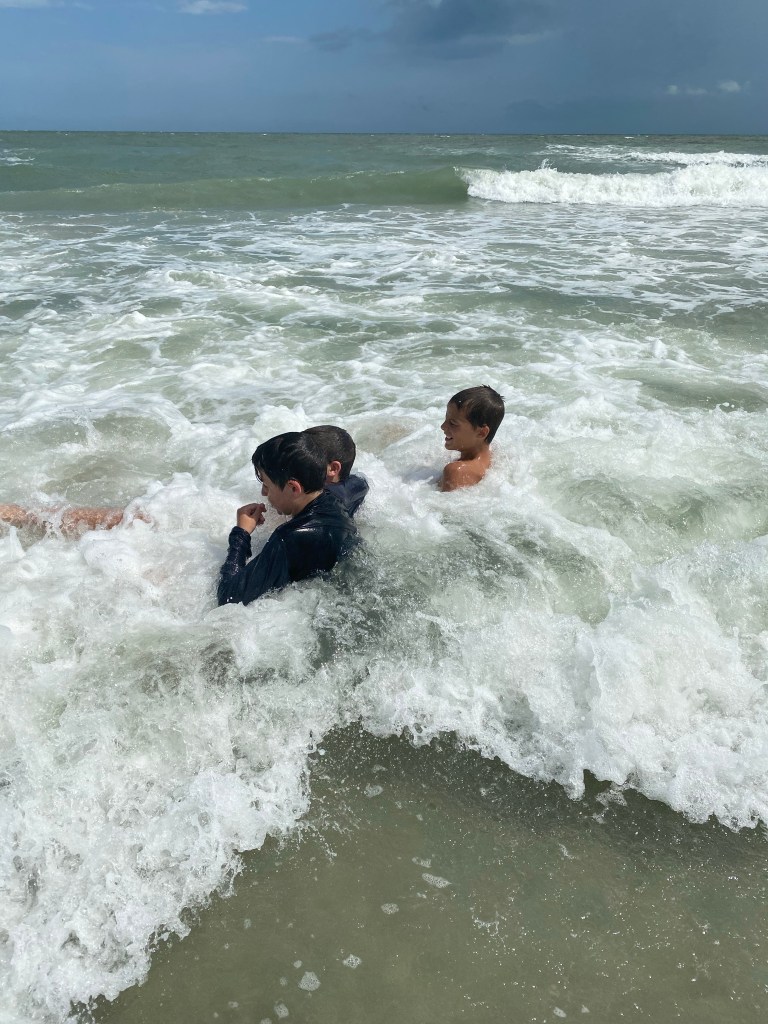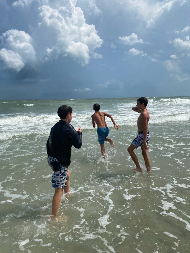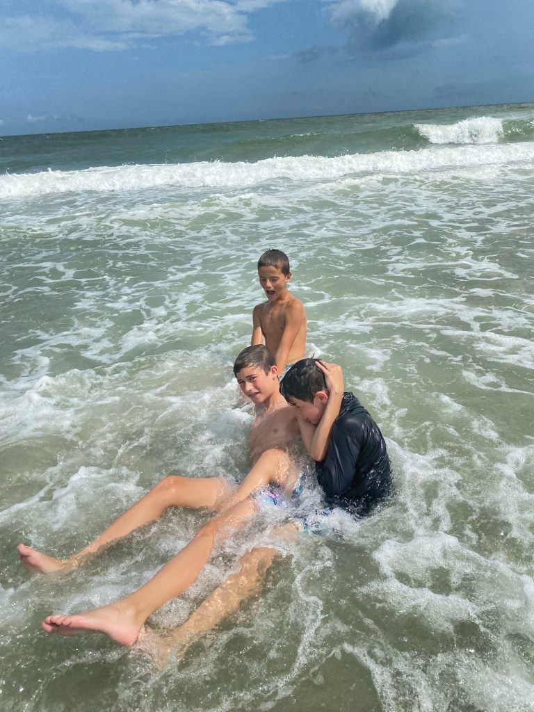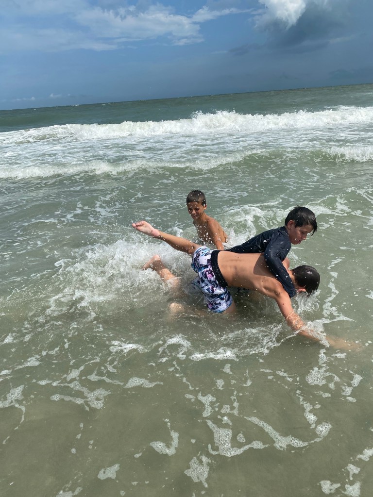 The boys have done a lot of fishin’, crabbin’, boogie boardin’, kayakin’, and swimming. They’ve had a ball.