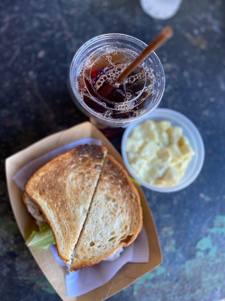 We stopped by the Peacock Cafe for a quick bite before hopping on a nature tour. Order the chicken salad on sourdough – ⭐️⭐️⭐️⭐️⭐️ Mom and I split the meal. Partly because we were not very hungry, and partly because it was $15. Remember, you’re paying for location & scenery. It was a beautiful picnic with plenty of shade.