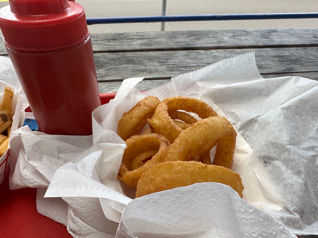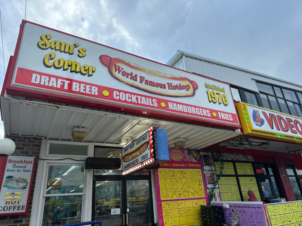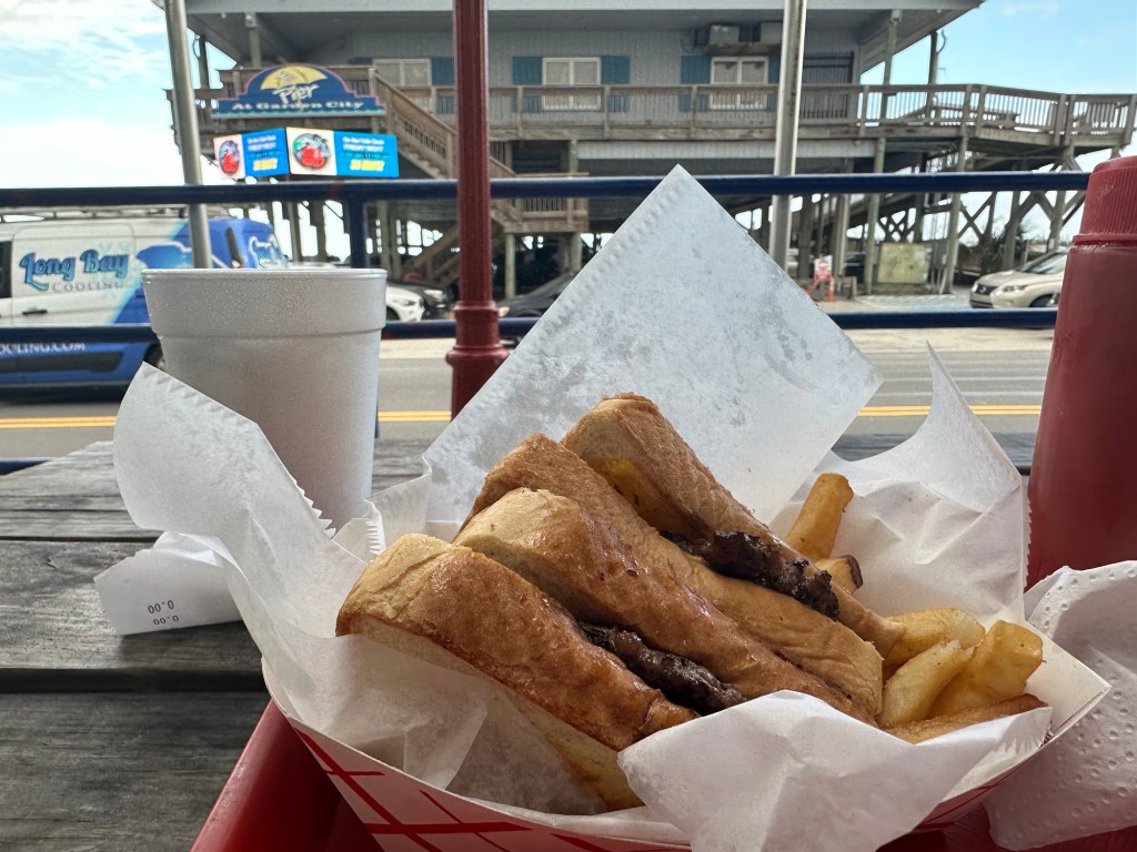If you’ve stayed in Garden City, you’ve probably eaten at Sam’s Corner. Mom and I used to go there to eat the Ocean Burger. Sounds unique and fancy, huh? It’s nothing more than hamburger meat and cheese inside a pita. They add a Ranch(ish) type sauce to the already delicious flavor. We took the girls one night last week. THEY WERE OUT OF PITA! (I put that in all caps because I’m still screaming).