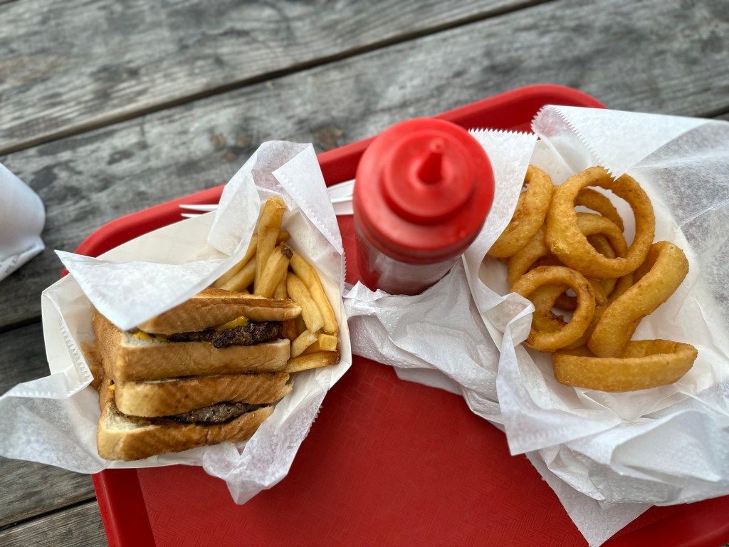 Once I was done giving the cook a hard time for running out of my beloved (pita) bread, he suggested I order the Patty Melt. “A customer told us just yesterday that it was the best they’d ever had.” He didn’t have to twist my arm. He was right. IMO, the buttery toast made the difference. Now I’ll have a hard time knowing which to order when we go back.
