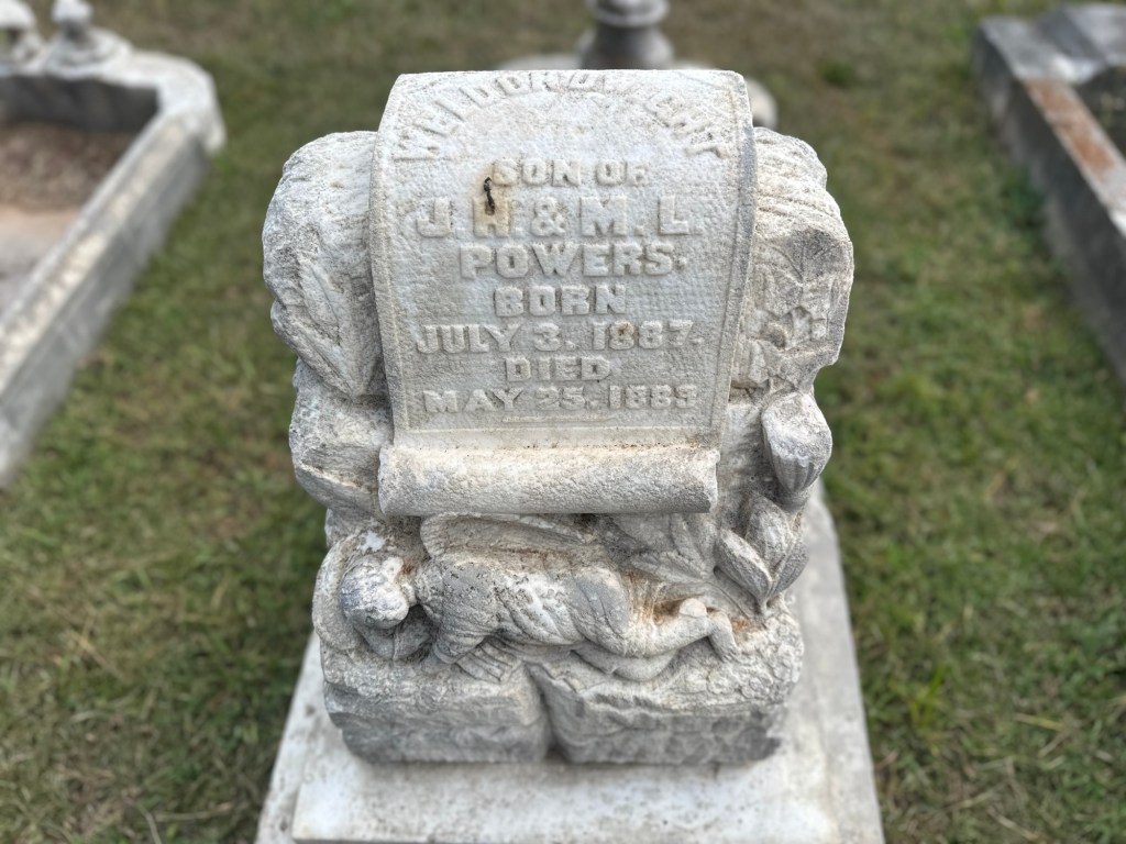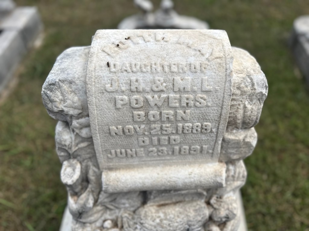 Mr. Henry Powers and Mrs. Mary Poole have three of their four children buried beside them. Two of the three died at the age of two. One was born and died on the same day. I also noticed that Mary was in her thirties when she died. Henry lived until 1940.