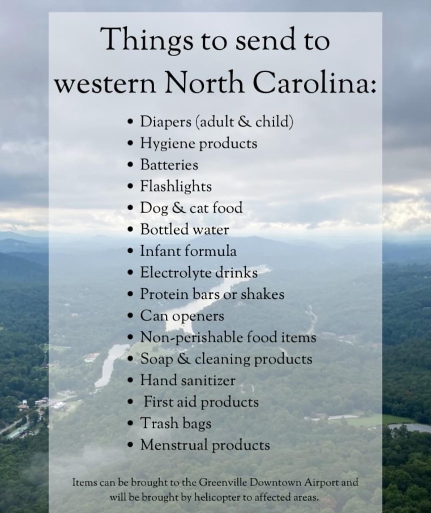 Have you been following the devastation in Western North Carolina? Seeing the suffering in the community has me feeling depressed. I thought I’d share Happy Helicopter Tours’ Facebook page. They have set up a GoFundMe and are collecting supplies at Runway Cafe at the Greenville downtown airport.