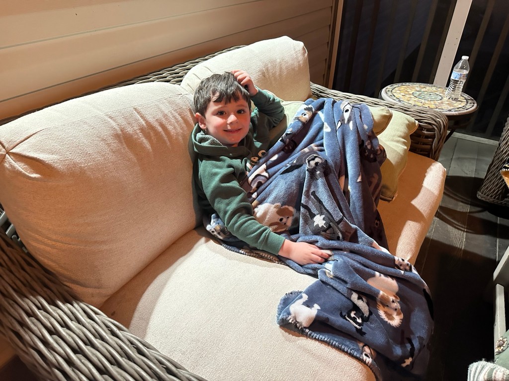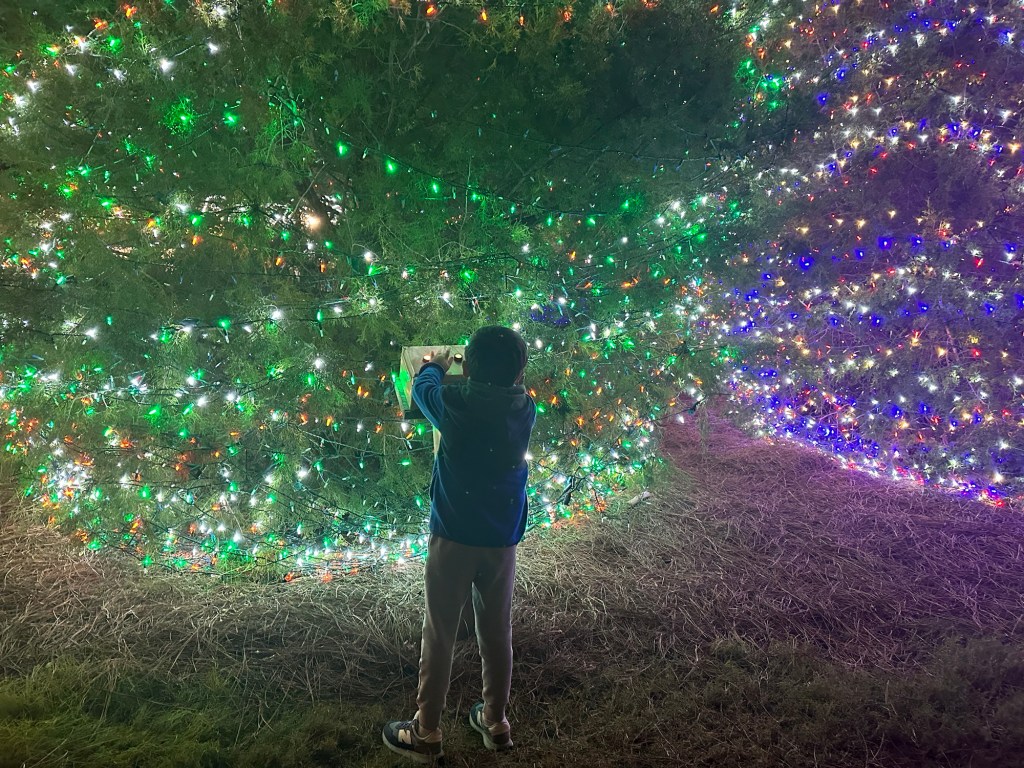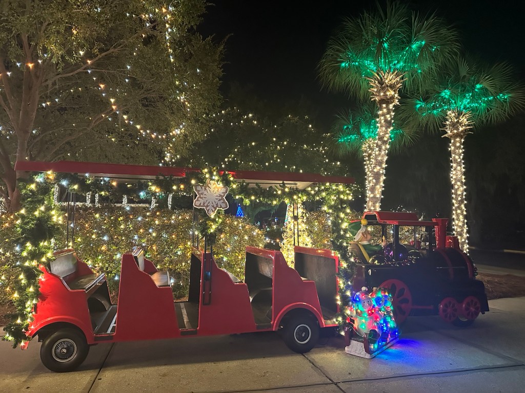 I might have teared up a little on the train ride through the lights. My family used to camp at James Island every year during Thanksgiving. We had the best holiday traditions. Mom was so happy riding around, showing Jackson all the lights. Meanwhile, our boys are half grown back home, living their best life because we’re not there! LOL