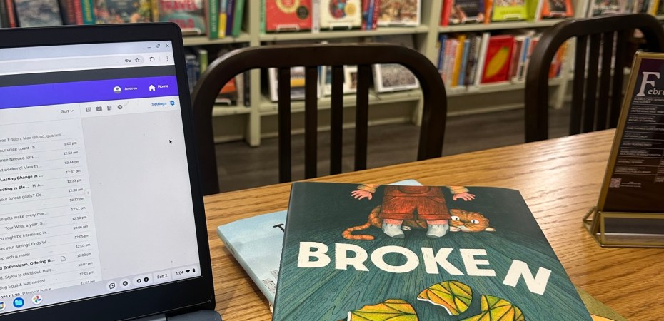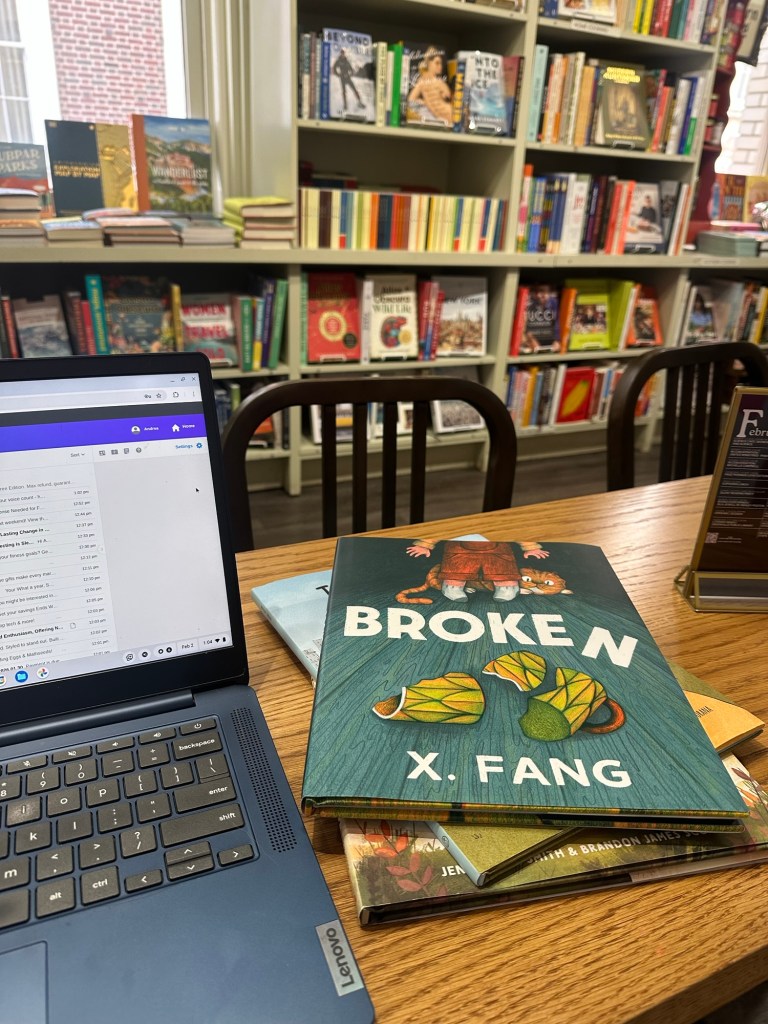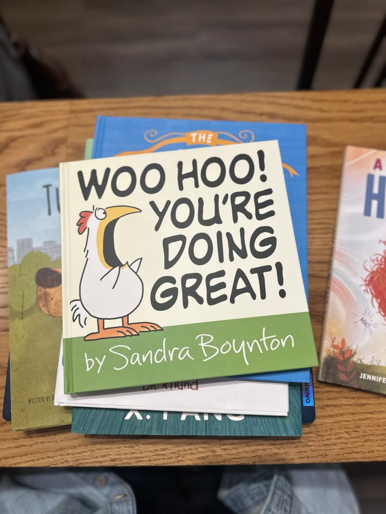 Today, we’re reading through a whole stack of children’s books and taking photos of illustration color patterns we like. Laurie and I didn’t really care for the color scheme our illustrator came up with for our book, so they are allowing us to give them ideas, which is pretty cool.